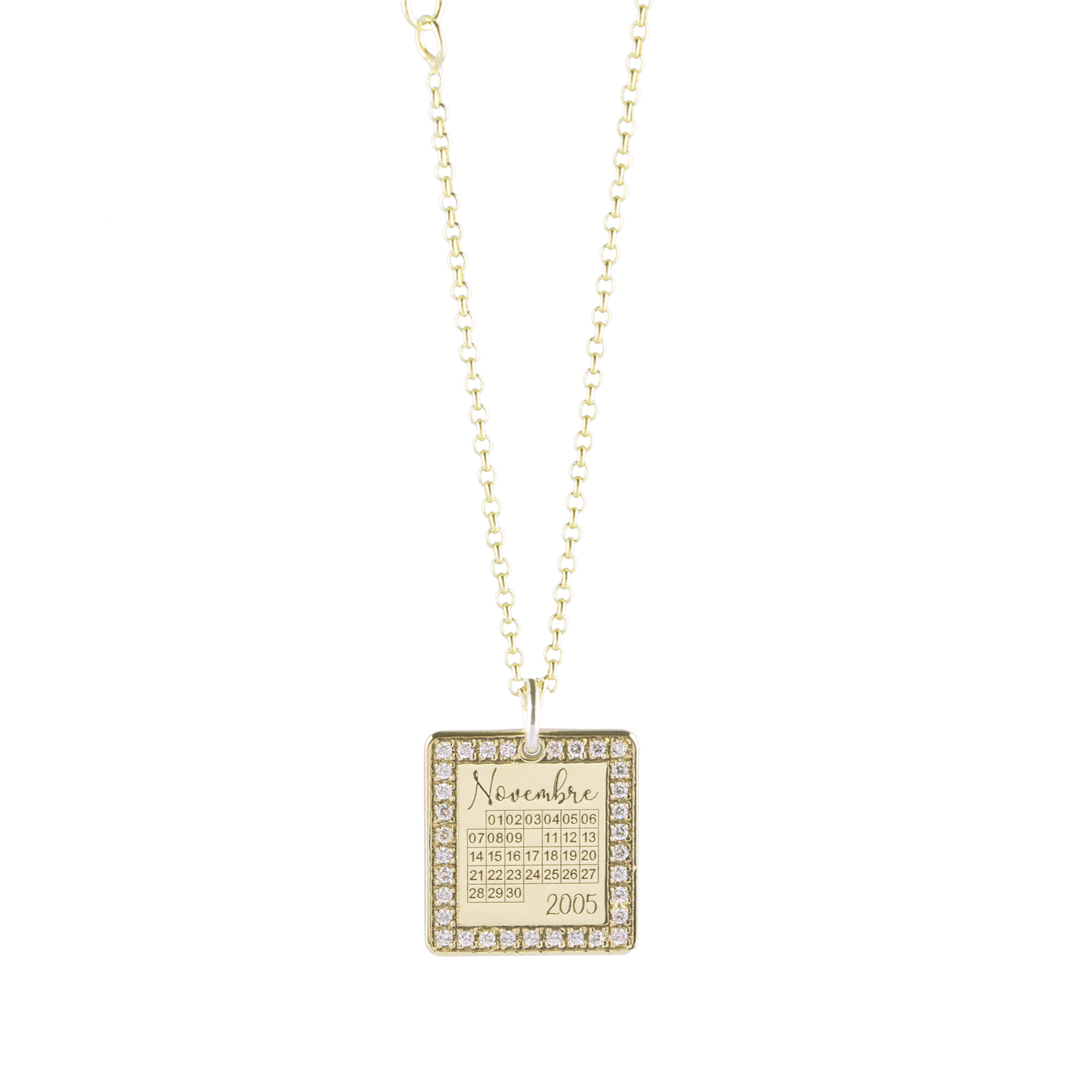 La nostra esclusiva collana Compleanno 9kt è il regalo perfetto per celebrare la data più importante della tua vita. Con il ciondolo a forma di calendario, potrai portare sempre con te la data di chi ami o del tuo compleanno, il tutto contornato da luccicanti zirconi, ottenendo un look sofisticato, unico e personalissimo.