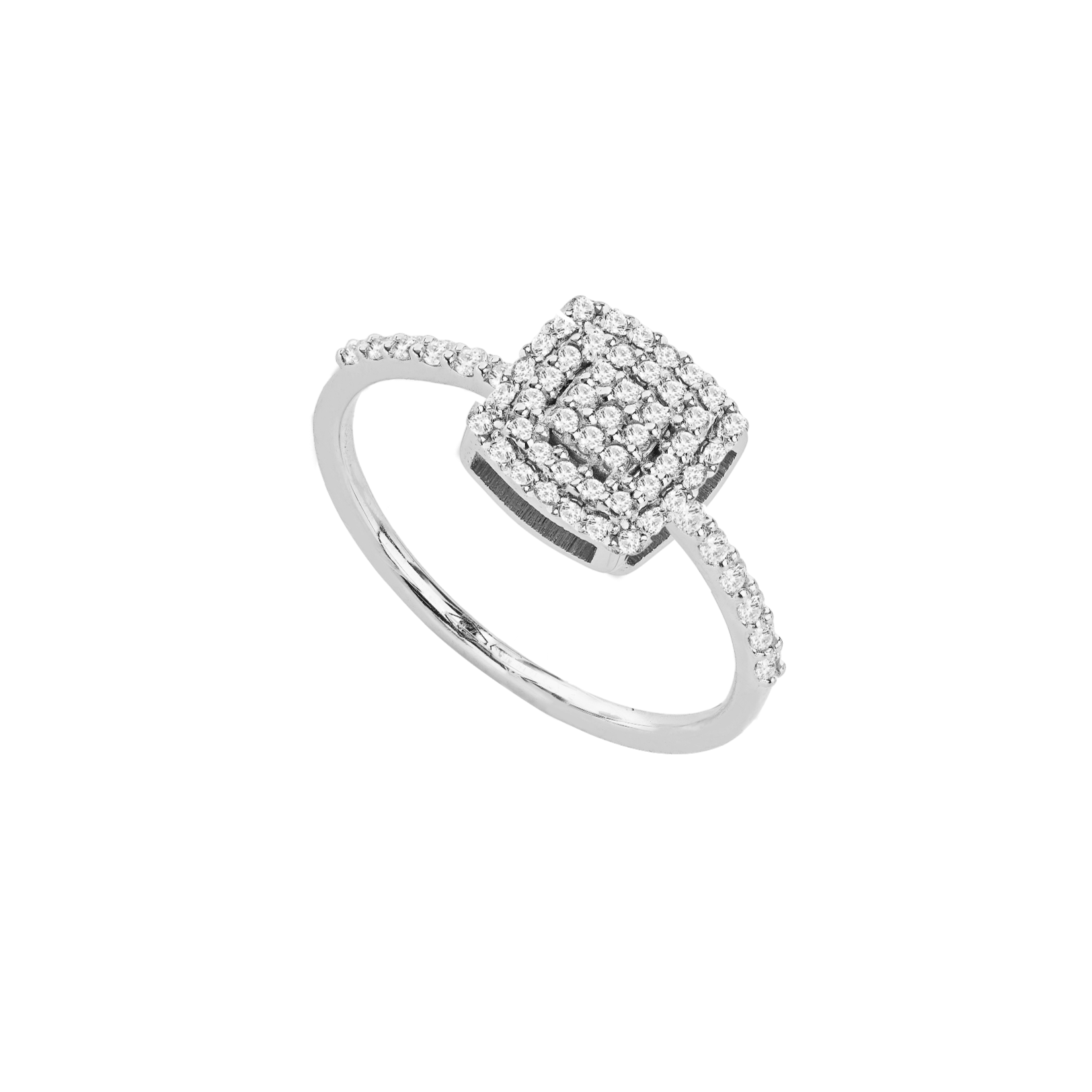 Anello in oro 18kt con quadrato grande pavè di diamanti bianchi