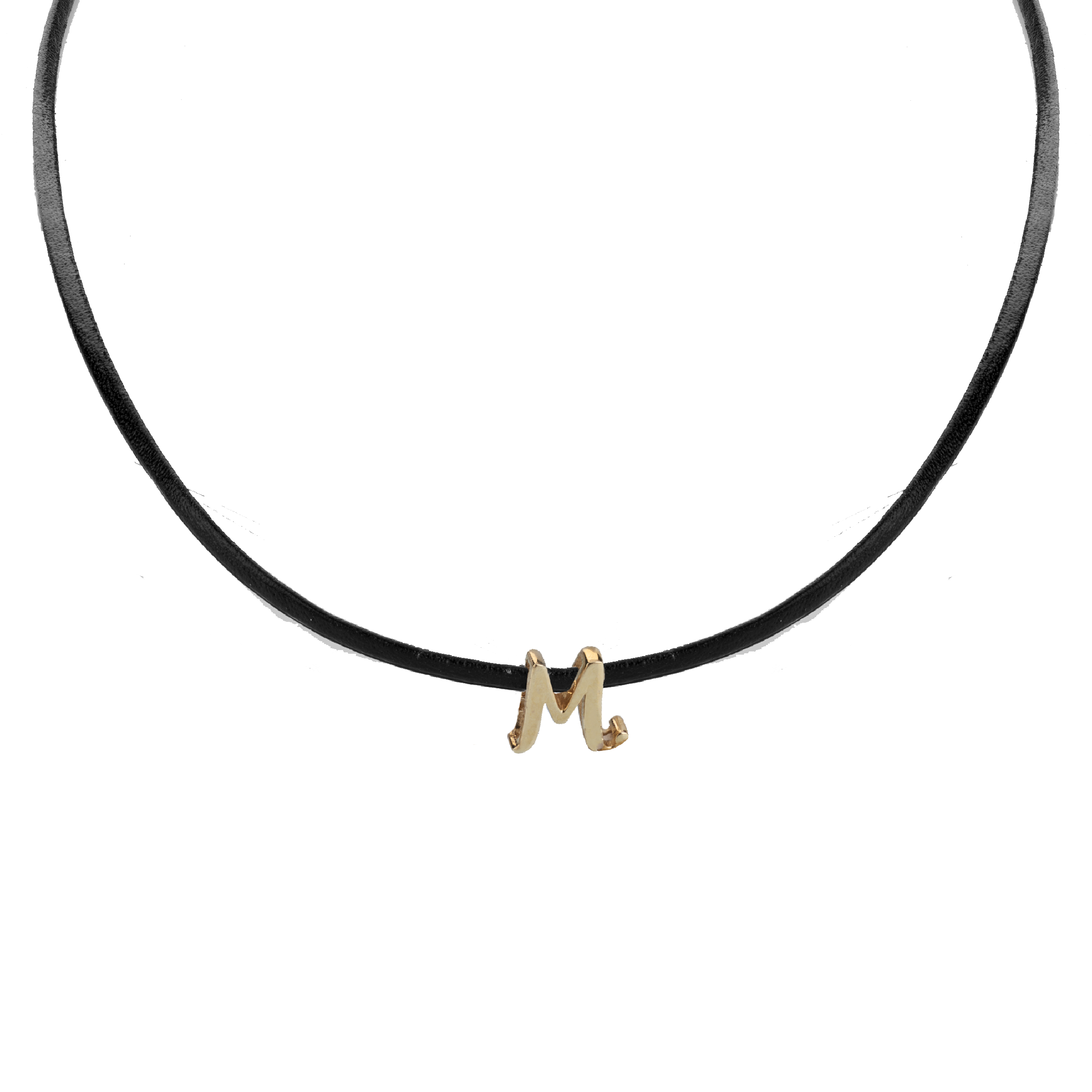 Choker in cuoio con lettera stilizzata in oro 18kt