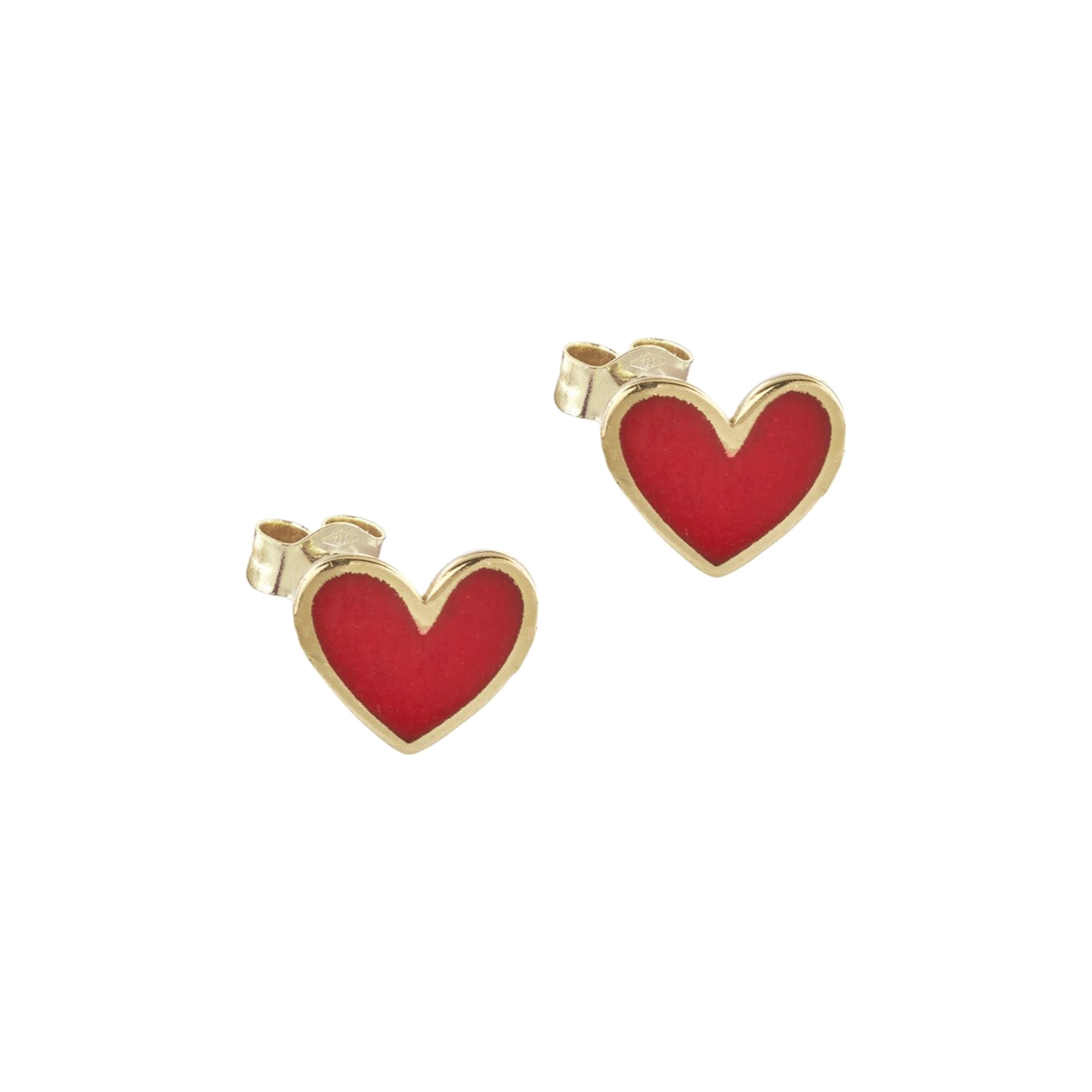 Orecchini in oro 18 kt, dal cuore smaltato di rosso intenso, un simbolo di eleganza e passione. L'accostamento tra il calore del colore e la raffinatezza dell'oro crea un contrasto sofisticato, ideale per chi ama distinguersi con un tocco di colore e classe senza tempo.