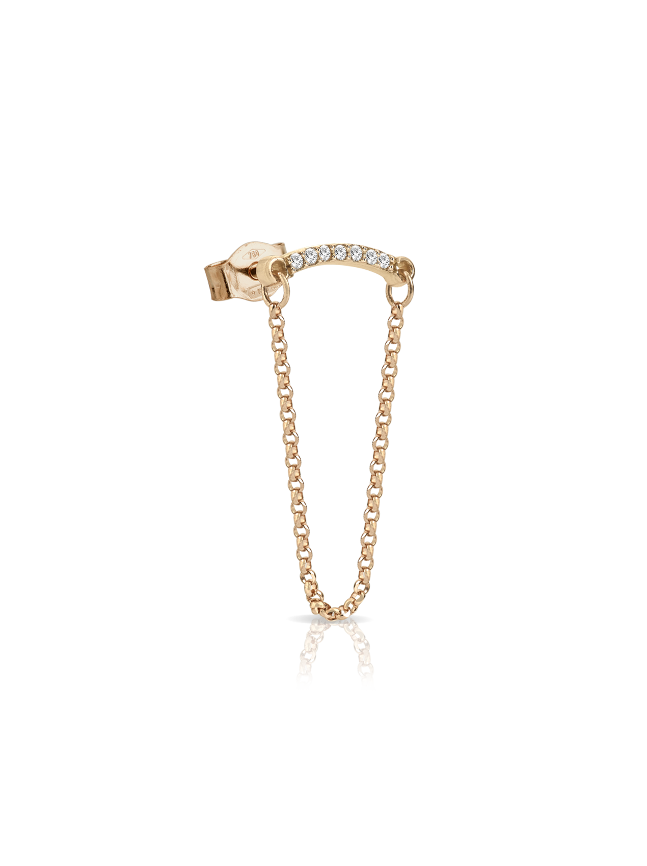 Un gioiello unico nel suo genere, che cattura la luce e la riflette rubando la scena, perfetto per chi cerca un dettaglio raffinato ma di impatto. Il nostro monorecchino in oro 18kt, con un delicato archetto di diamanti da 0,04ct e una catena sottile, si adagia con eleganza sul viso, regalando uno stile chic e particolare, come colei che lo indossa. Un dettaglio lussuoso, ideale per chi ama distinguersi con un accessorio sofisticato e pieno di personalità.