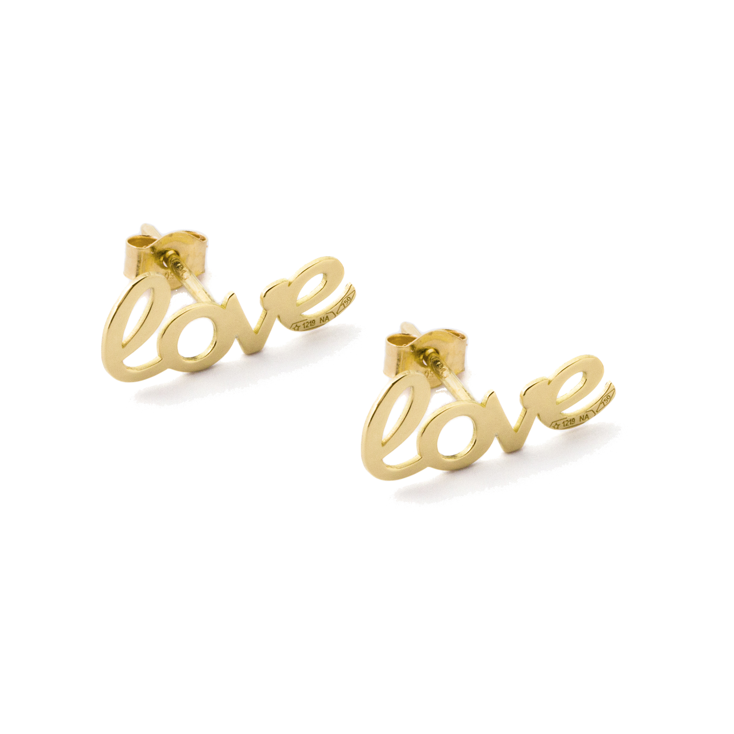 Orecchini in oro 18 kt con la scritta "Love" in elegante corsivo, un gesto raffinato e romantico che celebra l’amore in modo sofisticato. Un design moderno e personale, perfetto per chi desidera indossare un messaggio di passione e stile con discrezione e classe.