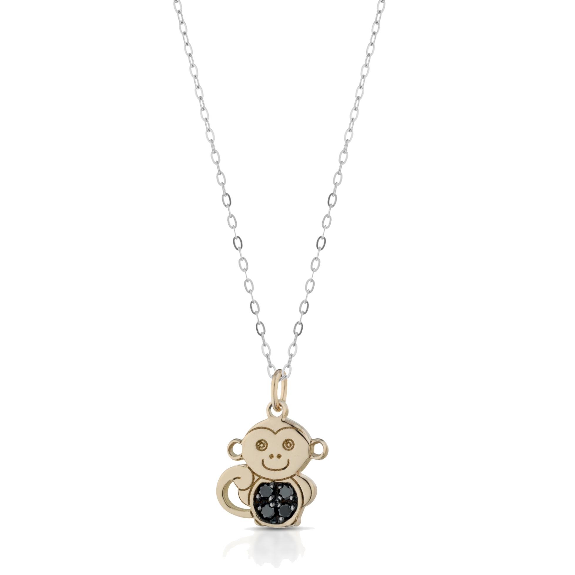 Collana in oro 18kt con ciondolo scimmietta e diamanti neri