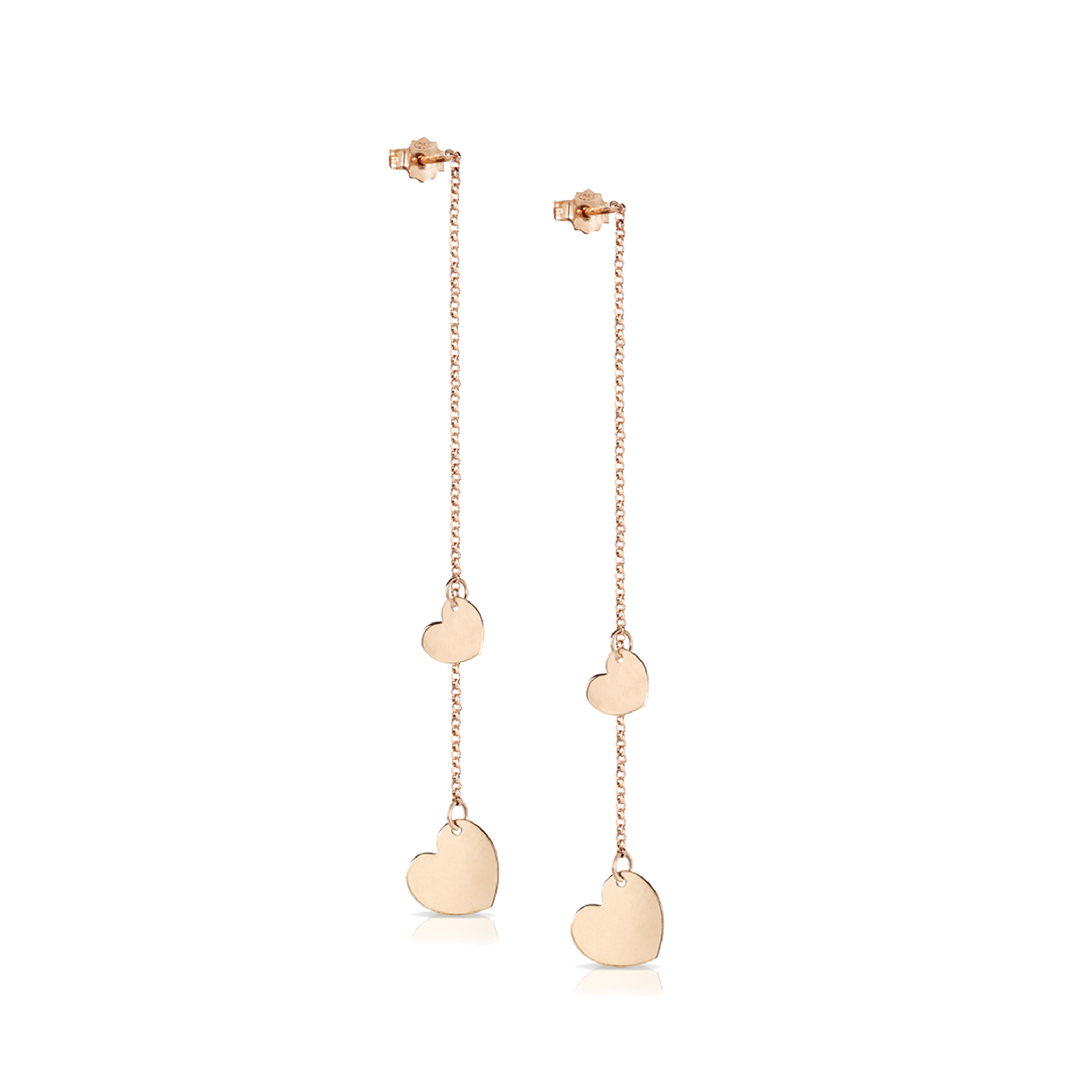 Regala questo speciale paio di orecchini pendenti in oro con doppio cuore alla persona che ami. Delicati e preziosi si abbinano perfettamente con qualsiasi tipo di outfit, sia da sera che da giorno. Un accessorio ideale in qualsiasi periodo dell’anno per via del design delicato e dalle linee sottili.