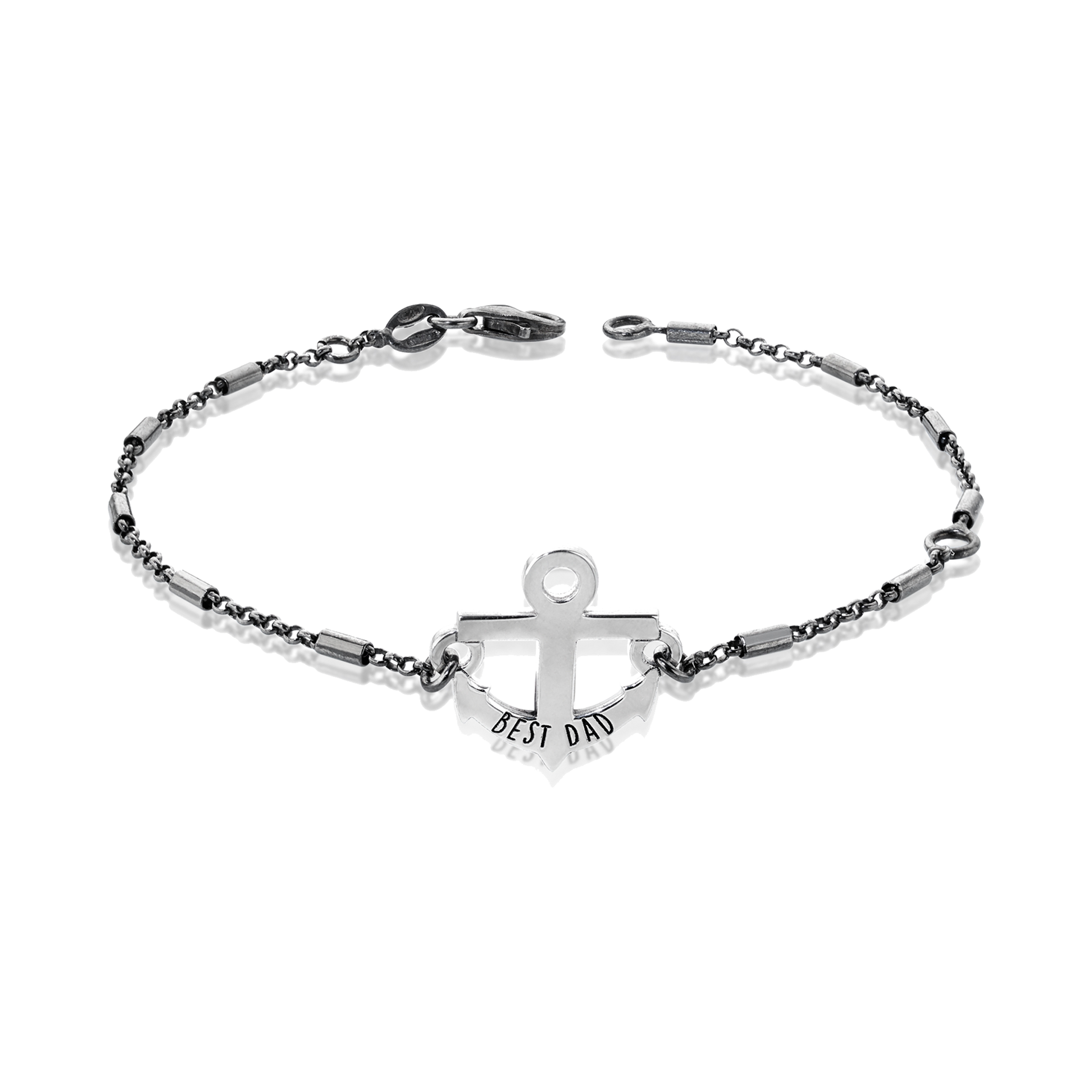 Bracciale in argento 925% con un ciondolo a forma di ancora, arricchito da un'incisione che recita "Best Dad". Il design semplice ma significativo, unito alla lucentezza dell'argento, rende questo gioiello un regalo perfetto per celebrare la figura paterna. Un simbolo di stabilità e affetto, ideale per esprimere amore e gratitudine con eleganza.