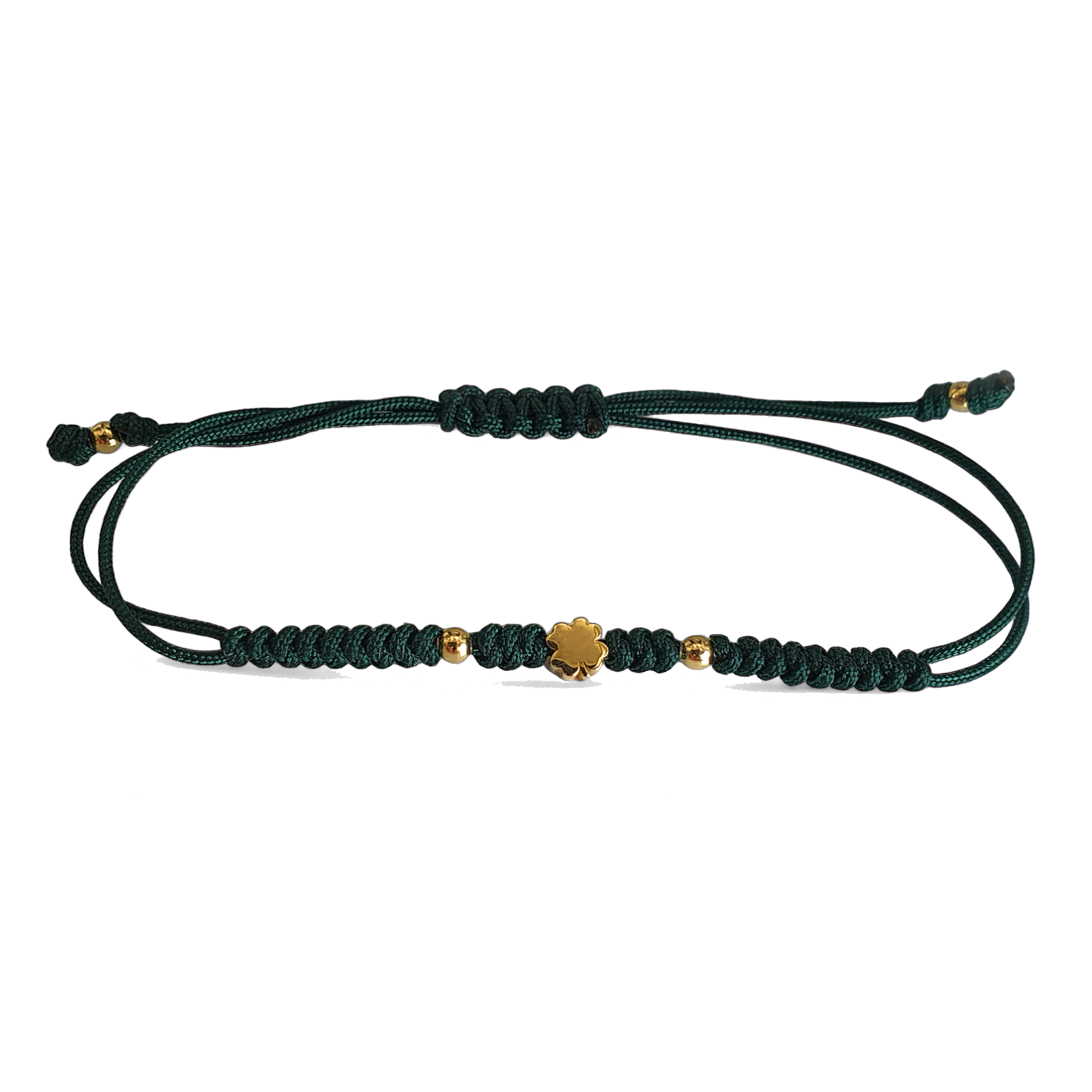 Bracciale con cordino regolabile e un ciondolo a forma di quadrifoglio in oro 18 kt, simbolo di fortuna e prosperità. La lucentezza dell'oro si fonde armoniosamente con la semplicità del cordino, creando un design delicato e fortunato. Un gioiello perfetto per chi cerca un accessorio che porti buona sorte, unendo eleganza e significato.