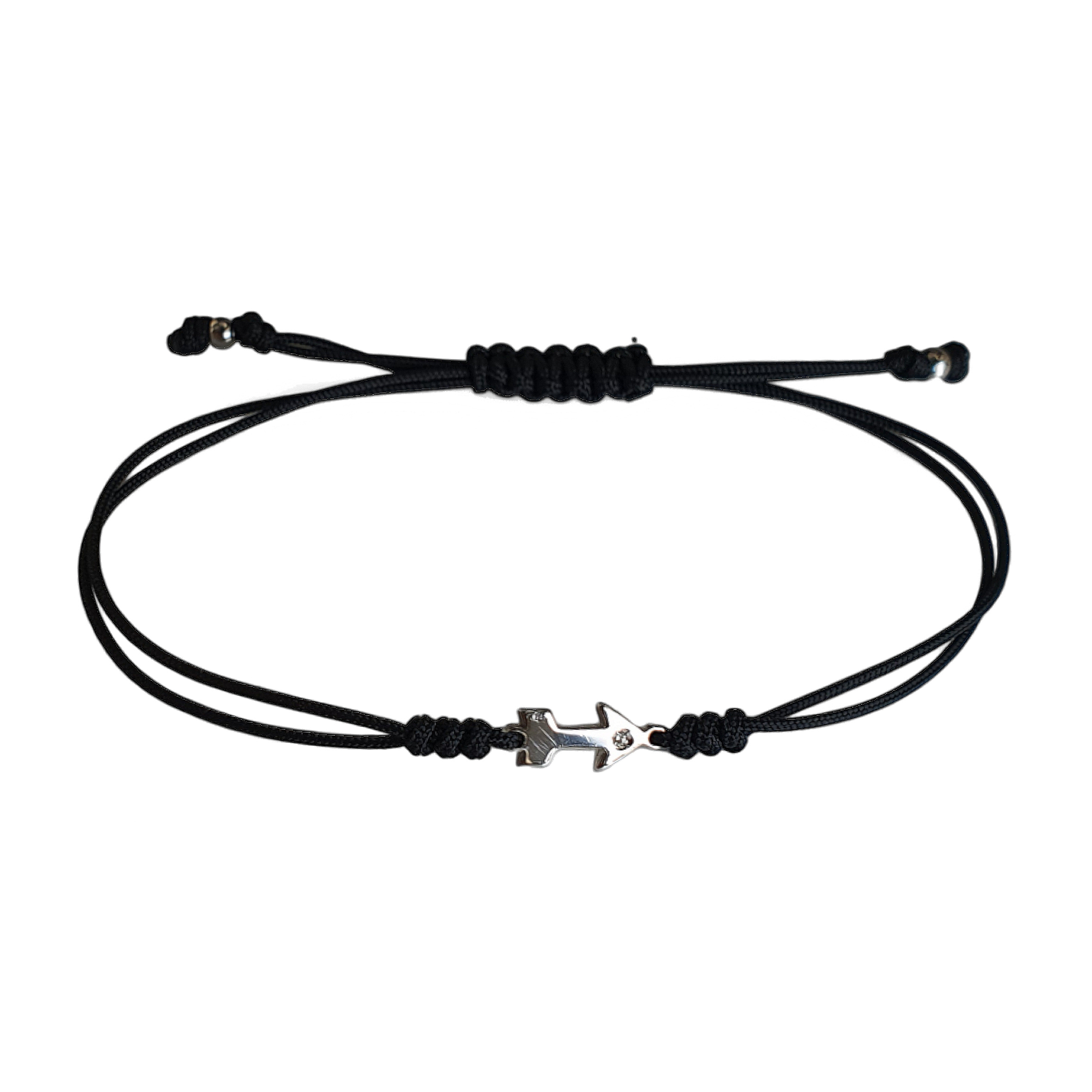 Bracciale con cordino regolabile e un ciondolo a forma di freccia in oro 18 kt, impreziosito da un diamante incastonato che ne accentua la brillantezza. Il design elegante e simbolico della freccia, unito alla luminosità del diamante, crea un gioiello sofisticato e significativo. Un accessorio perfetto per chi cerca un simbolo di forza e direzione, con un tocco di classe.