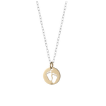 Sii alla moda con stile grazie a questa collana in argento con ciondolo in oro a forma di piedini. Aggiungi un tocco maschile al tuo outfit con il delicato ciondolo abbinato alla catenina brunita. Perfetto come regalo per le occasioni speciali.