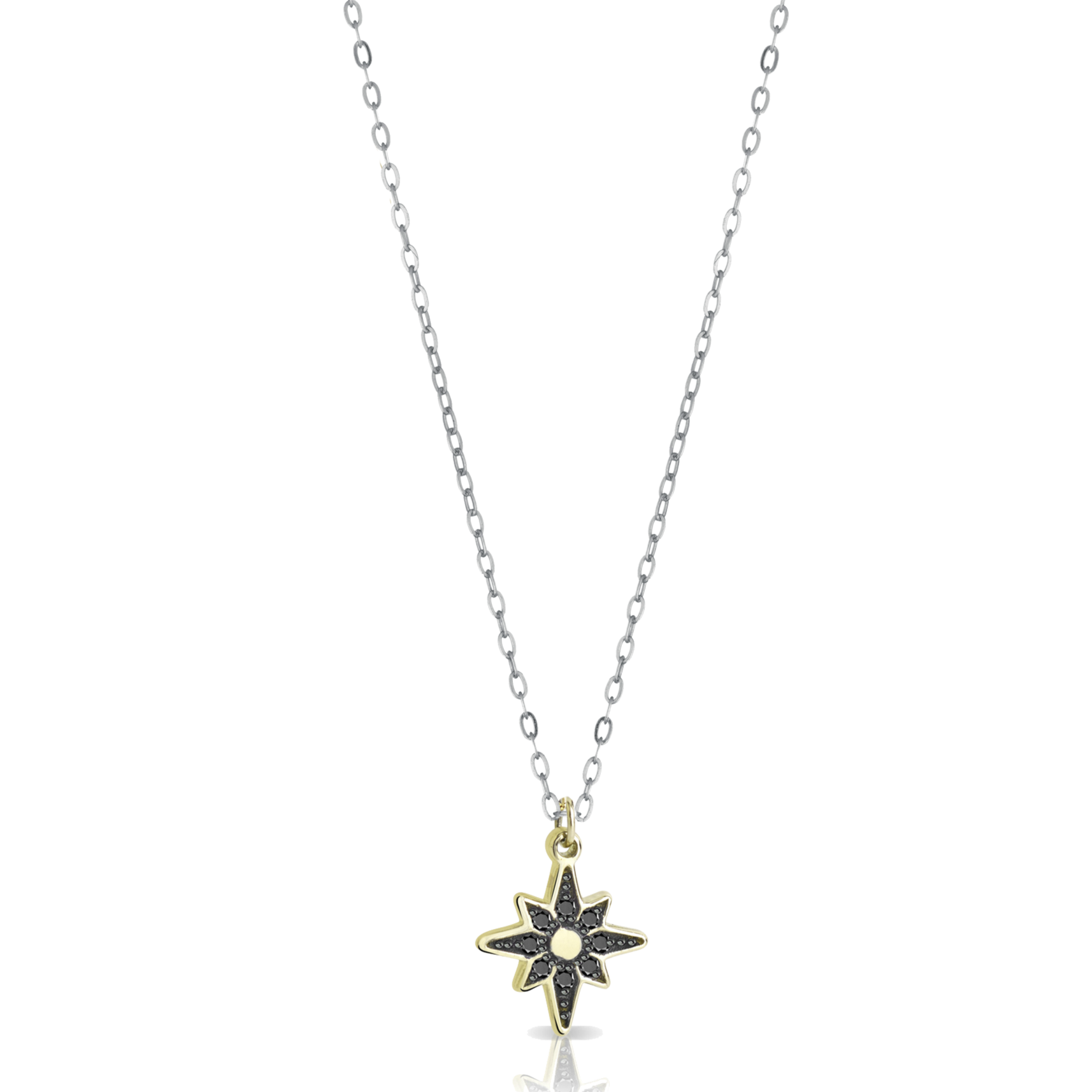 Collana in oro 18kt con rosa dei venti di diamanti neri