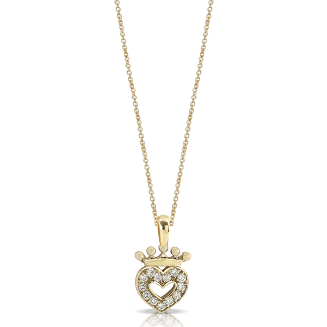 18kt gold necklace with empty Sacred heart and white diamond cross