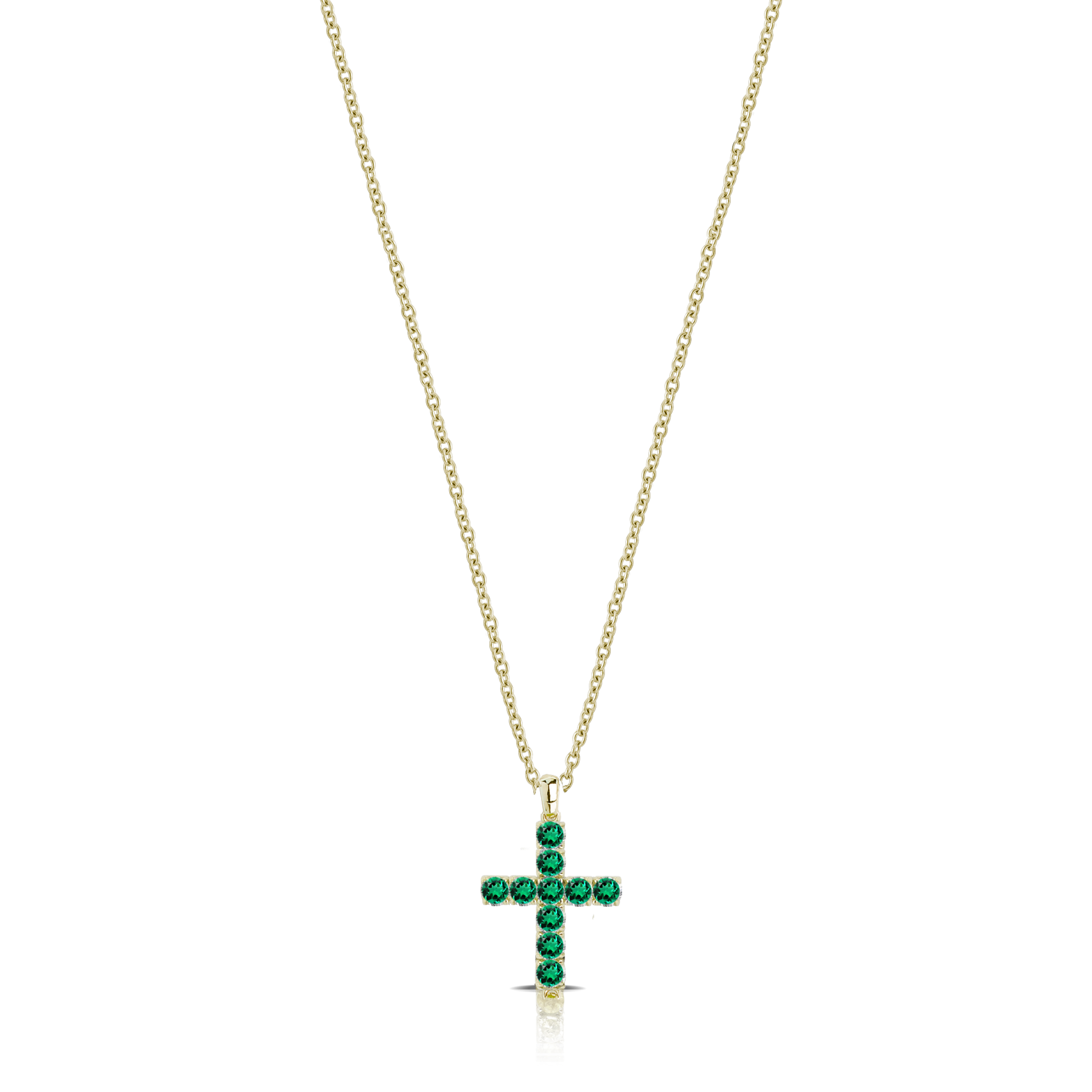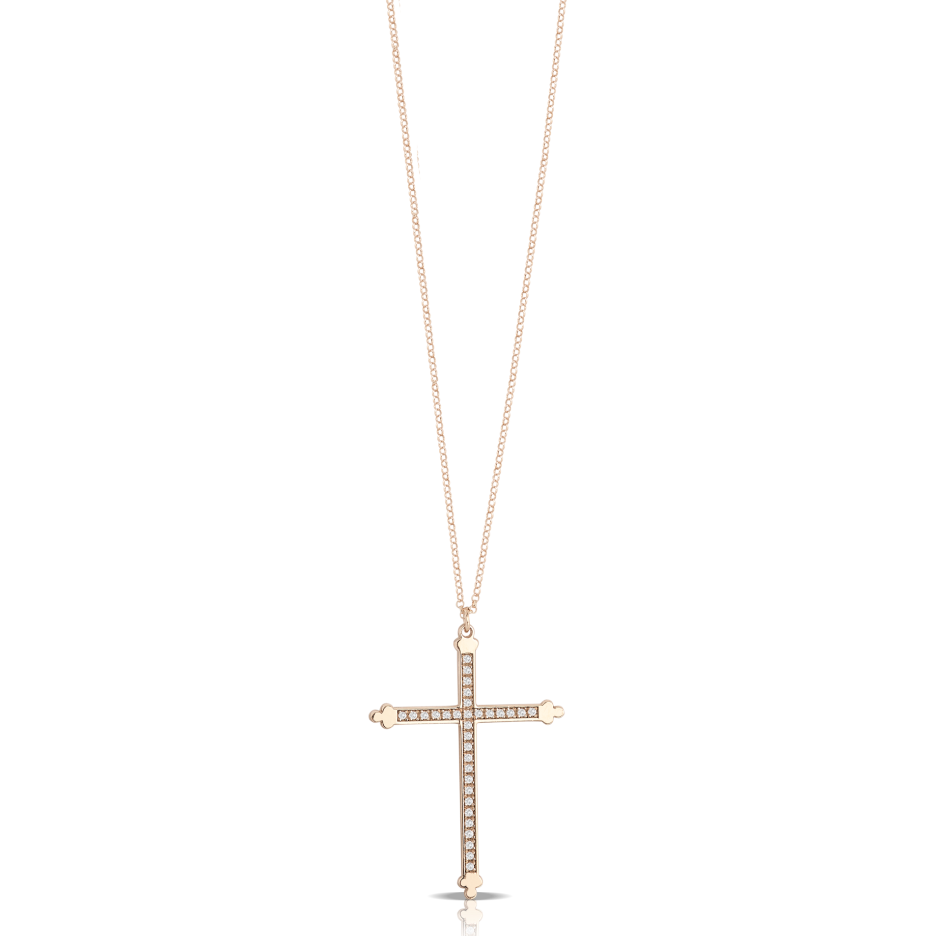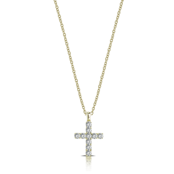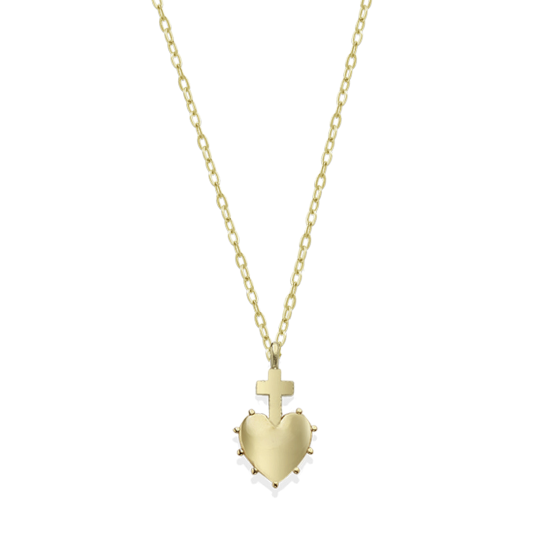 18kt Gold Necklace with Medium Sacred Heart and White Diamond Cross