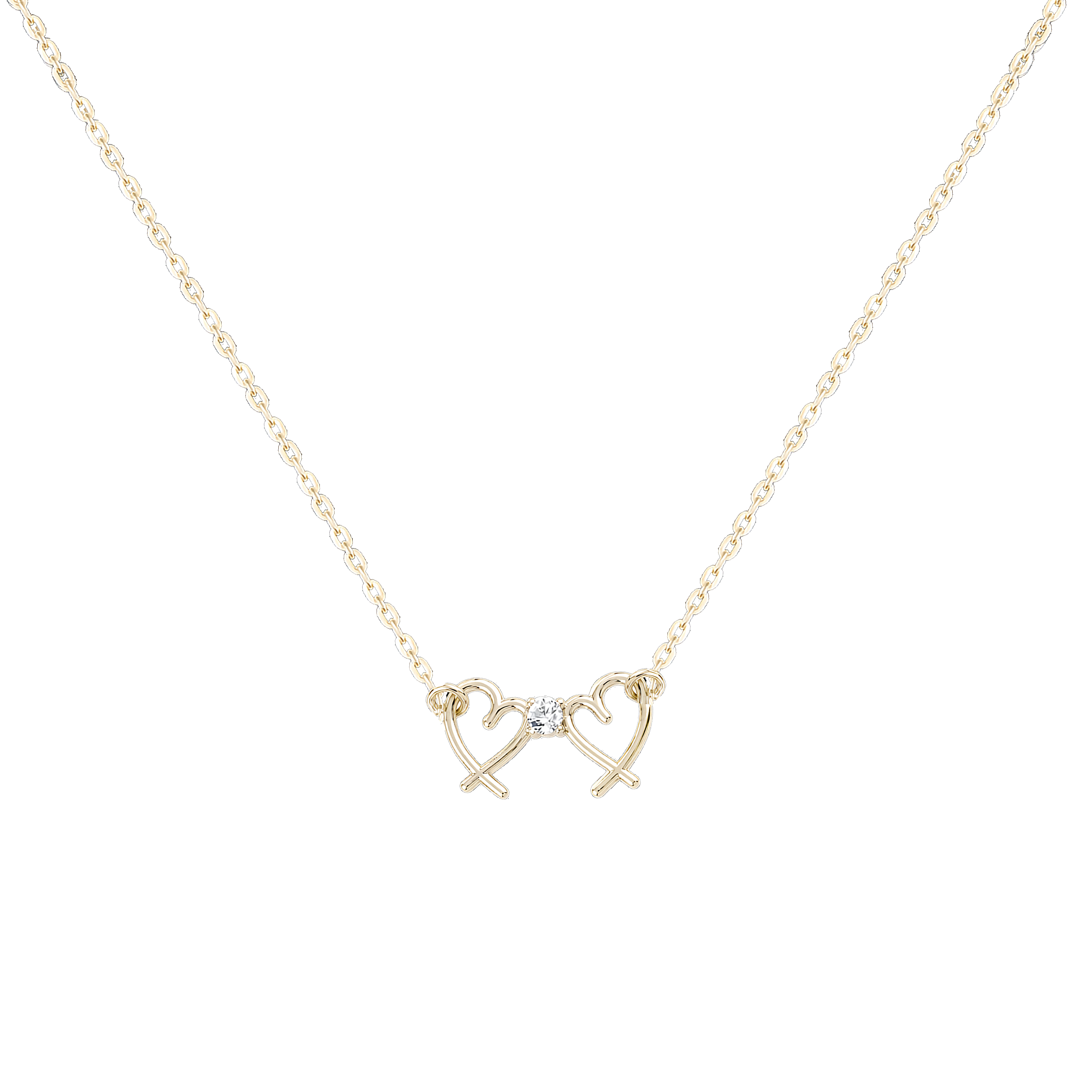 Collana in oro 9kt con cuori e diamante lab ct. 0,05