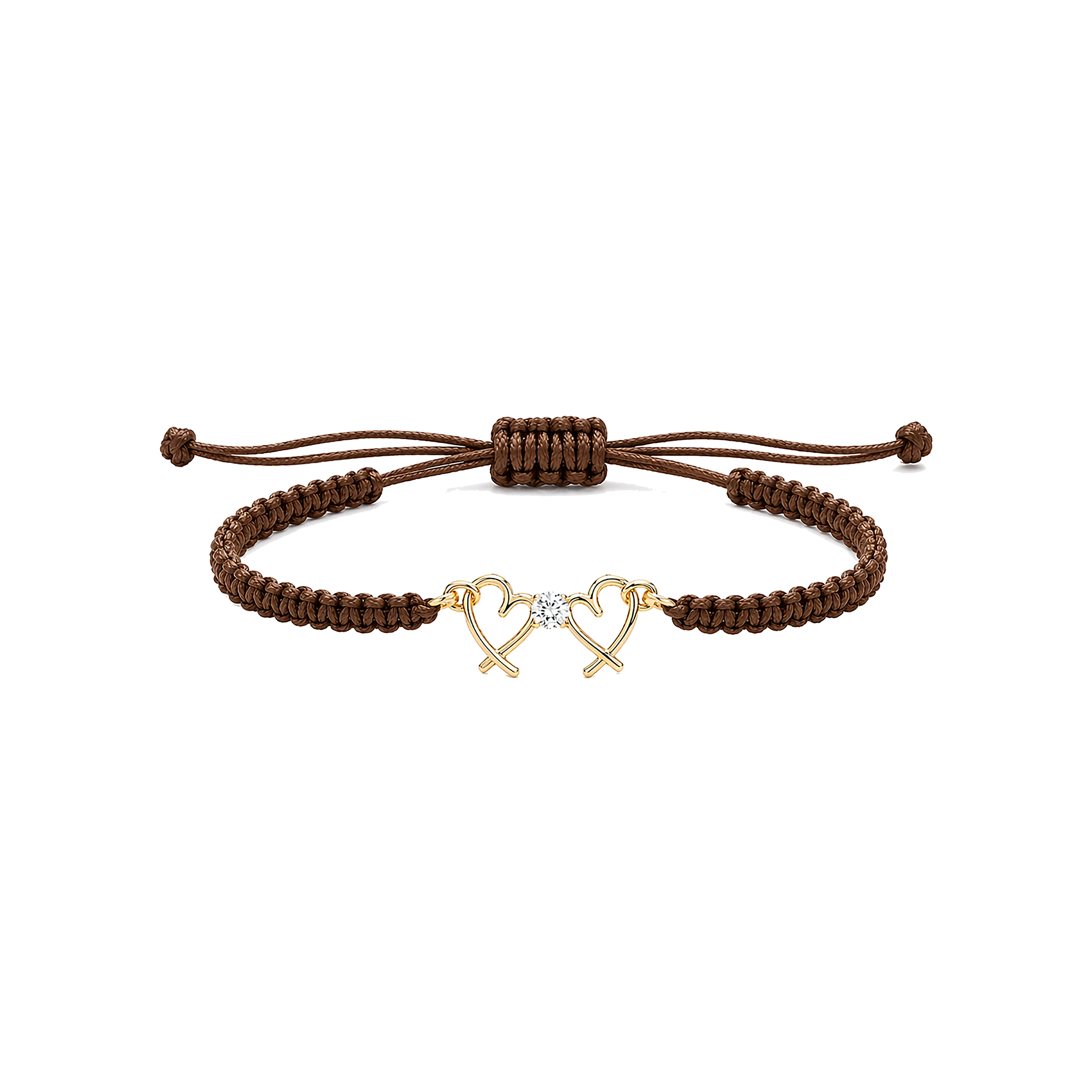 Cordoncino in oro 9kt con cuori e diamante lab grown ct. 0,05