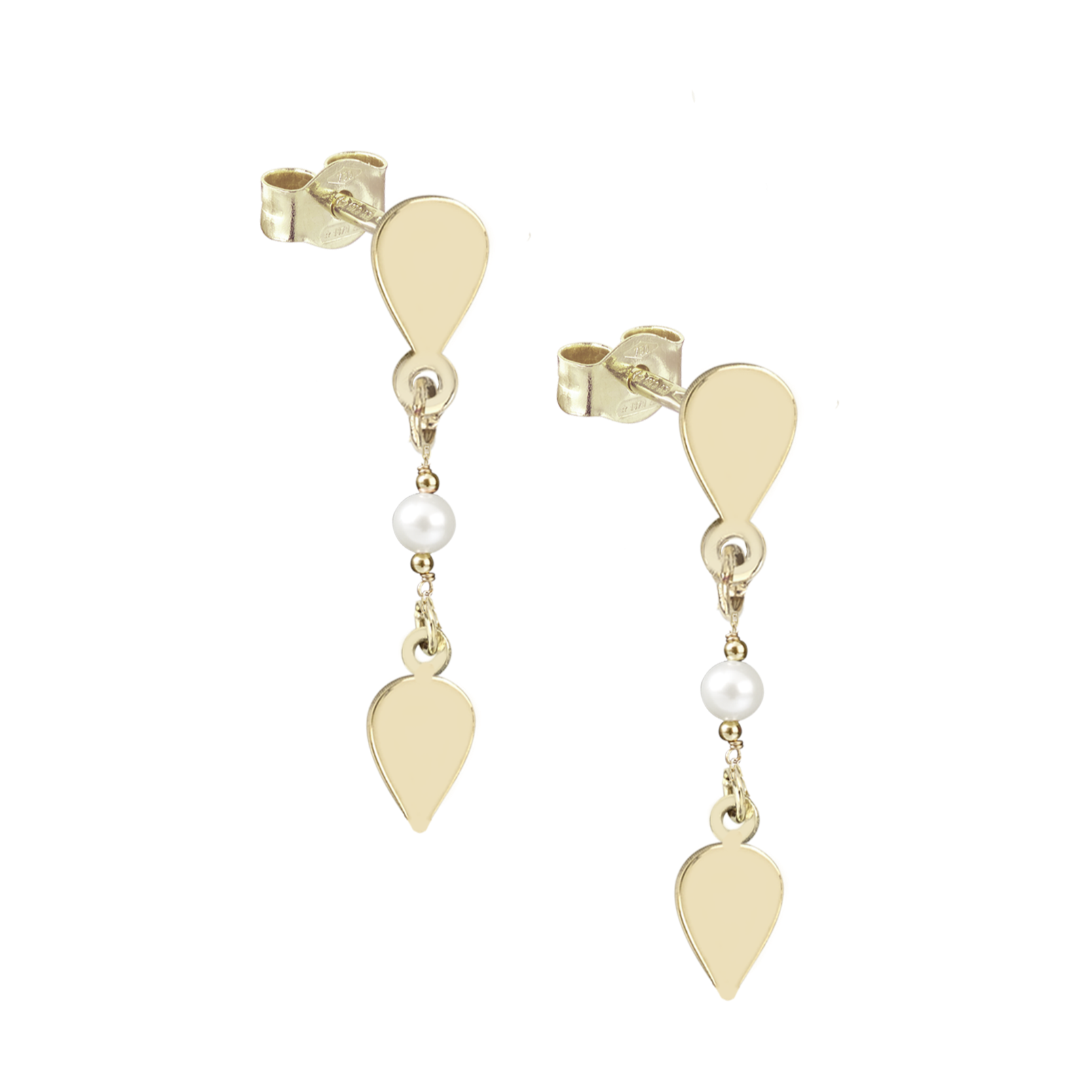 The Pearl Drop earrings in 18kt gold are a charming blend of elegance and modernity. Each earring features a classic pearl that dangles gracefully, accompanied by an inverted gold drop that adds a bold, contemporary touch. This unique design embodies the timeless beauty of pearls, while the shimmering gold reflects the light in a captivating way. Perfect for any occasion, these earrings will elevate any look, making you the star of every special moment. Wear them and let your style speak for itself.