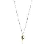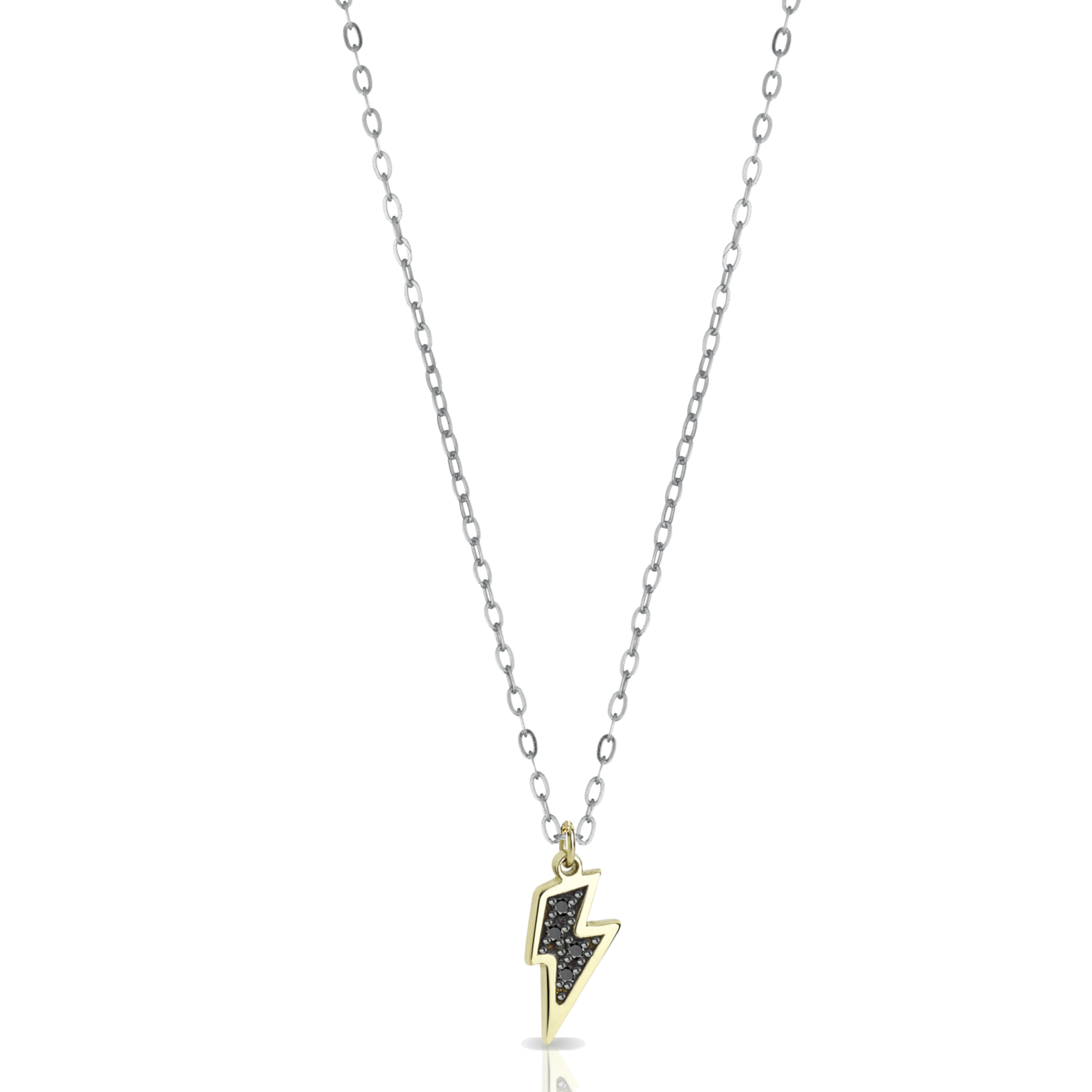 This lightning bolt pendant necklace, set with black diamonds, exudes bold, contemporary elegance. The mysterious black diamonds contrast with the dynamic, sharp shape of the lightning bolt in a statement piece that combines strength, style and sophistication.
