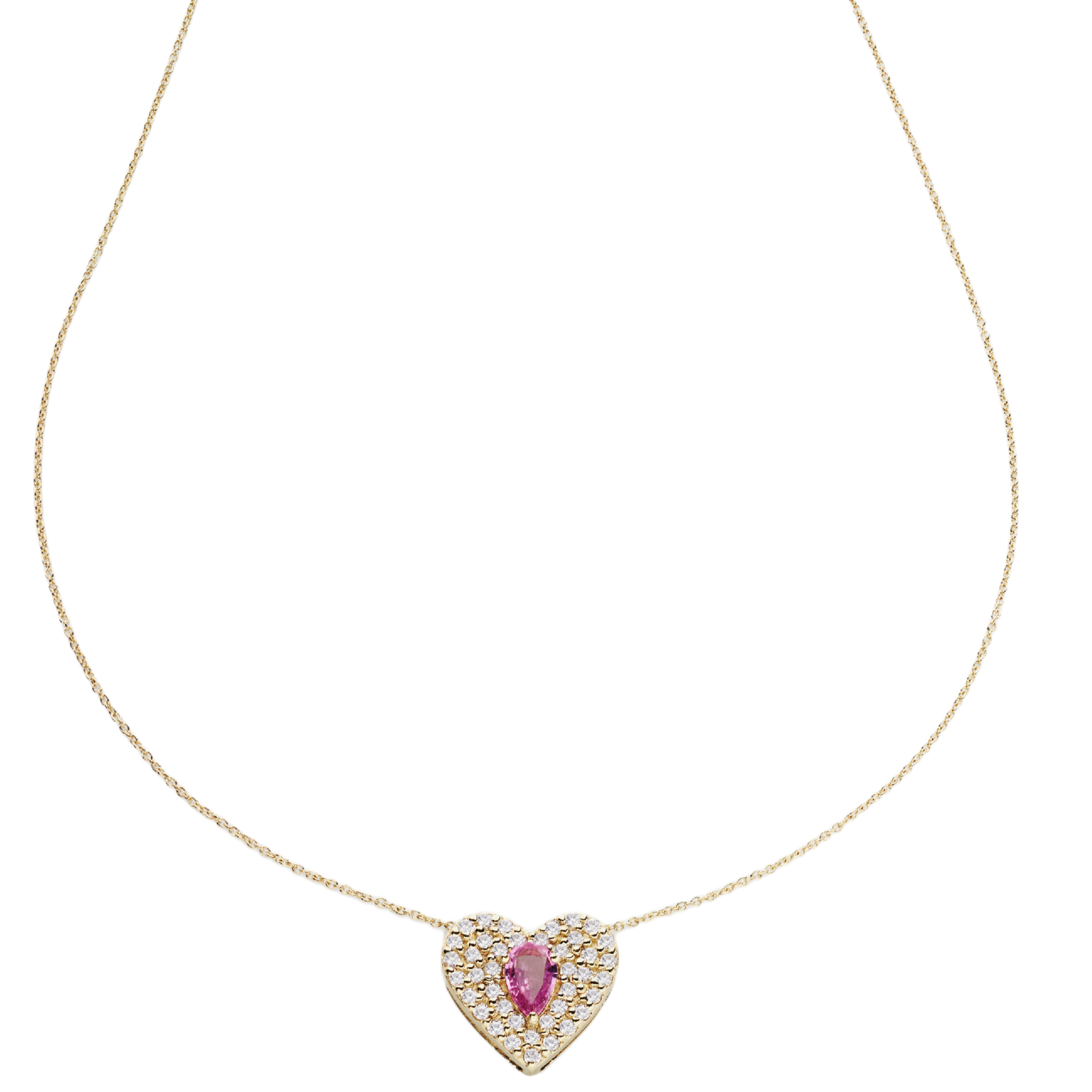 This necklace features a heart-shaped pendant, embellished with diamonds and a central gemstone in your choice of pink sapphire, emerald or blue sapphire . A piece that combines romance and sophistication, with a combination of brilliant diamonds and precious stones that capture the light and the heart. Perfect for celebrating an everlasting love or adding a touch of elegance to your style.