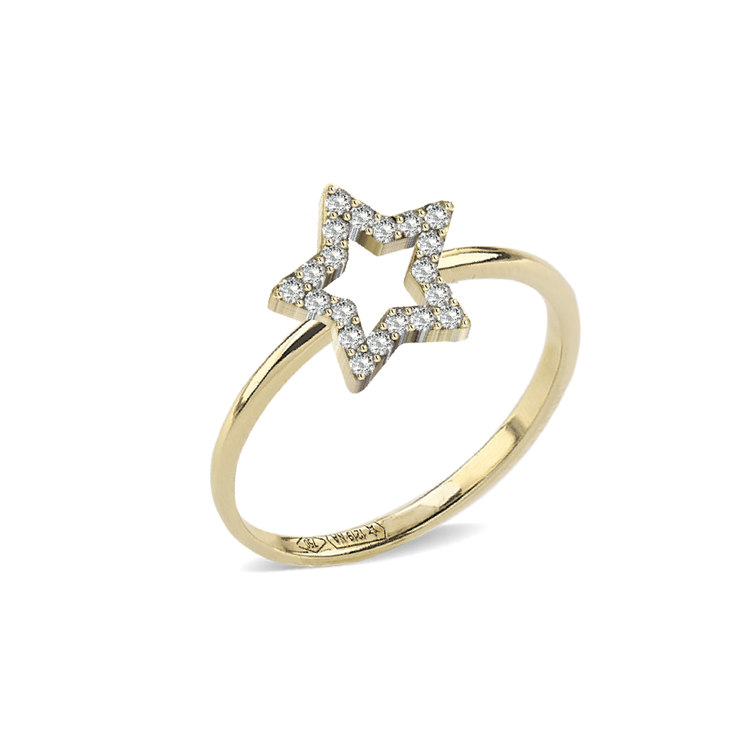 18kt gold ring with white diamond star