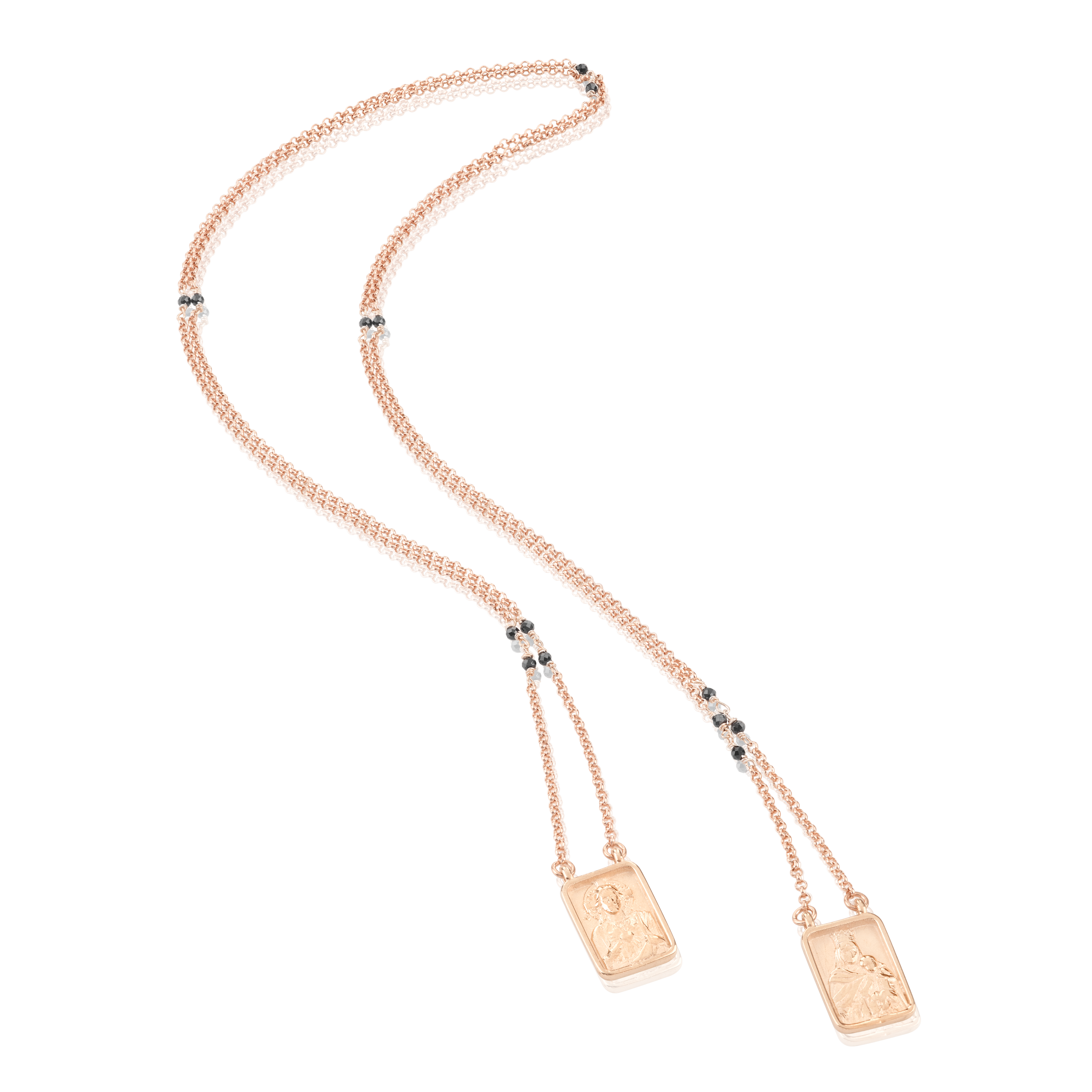 Lo Scapolare è il fiore all’occhiello di MyCharm, un gioiello unico che fonde tradizione e innovazione. Ispirato al famoso scapolare religioso, viene reinterpretato in chiave moderna per chi desidera un accessorio raffinato e dal significato profondo. La sua versatilità è evidenziata dalla doppia modalità di indosso: la presenza di una pallina slider permette di regolare la lunghezza secondo le proprie necessità, indossando così lo Scapolare corto sul davanti e lungo sulla schiena, oppure al contrario, per creare un effetto interessante e particolare che valorizza entrambi i lati.