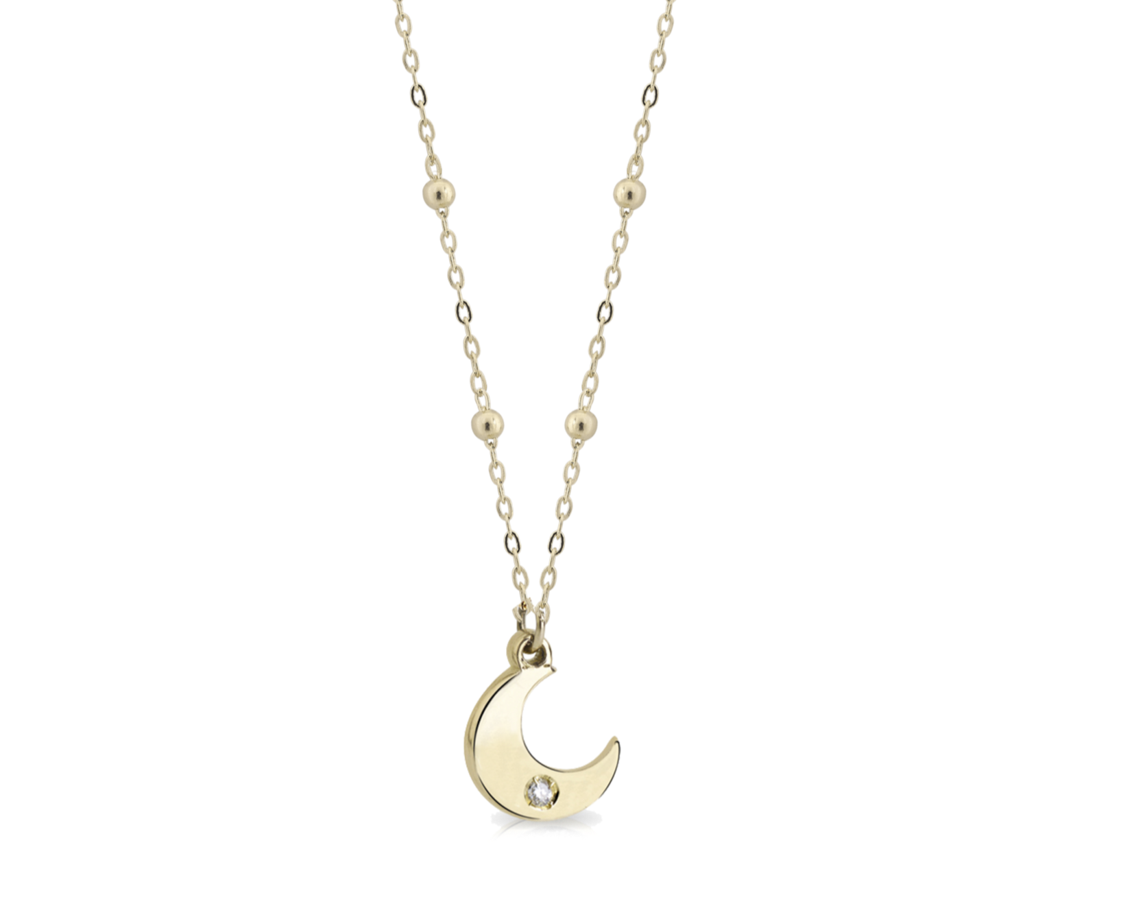 Lasciatevi ammaliare dalla maestosa eleganza della nostra collana Luna Shiny in oro 18kt, dove una luna scatolata brilla grazie all'incantevole riflesso del diamante che la impreziosisce. Ogni volta che la indosserete, sarete avvolti da un'aura di raffinata femminilità, che catturerà gli sguardi ammirati di chi vi circonda. L'equilibrio armonico tra i materiali preziosi e la forma sinuosa crea un gioiello senza tempo, destinato a diventare il vostro inseparabile compagno di stile.