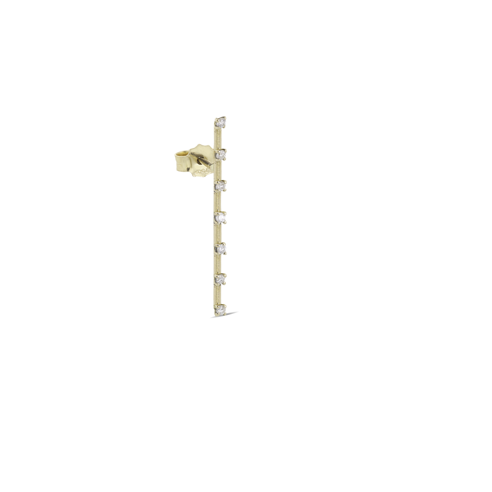 Monorecchino in oro 18 kt a forma di barra, adornato da diamanti incastonati che scintillano con una luminosità raffinata. Un design minimalista e moderno, perfetto per aggiungere un tocco di eleganza sofisticata a chi ama distinguersi con discrezione e stile.