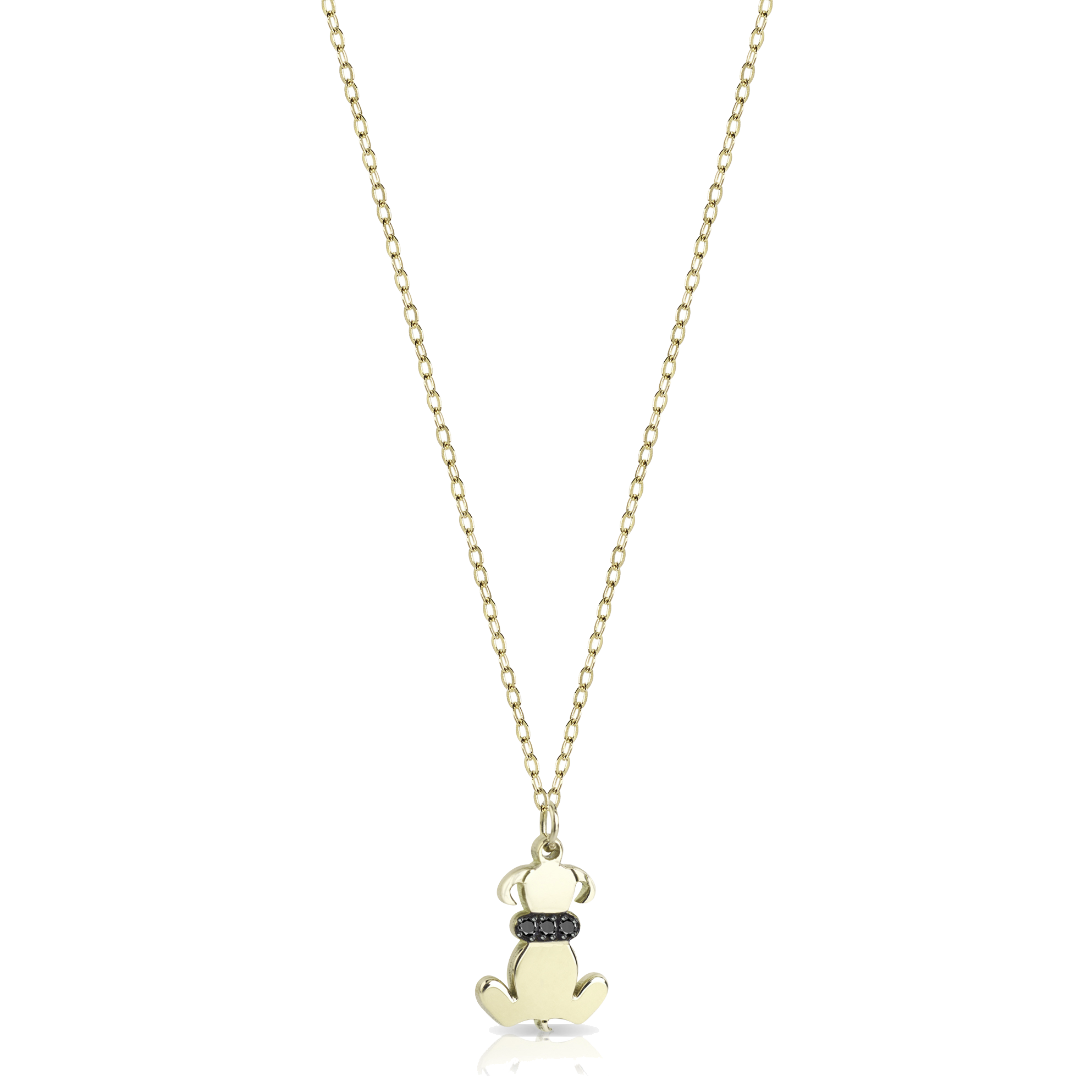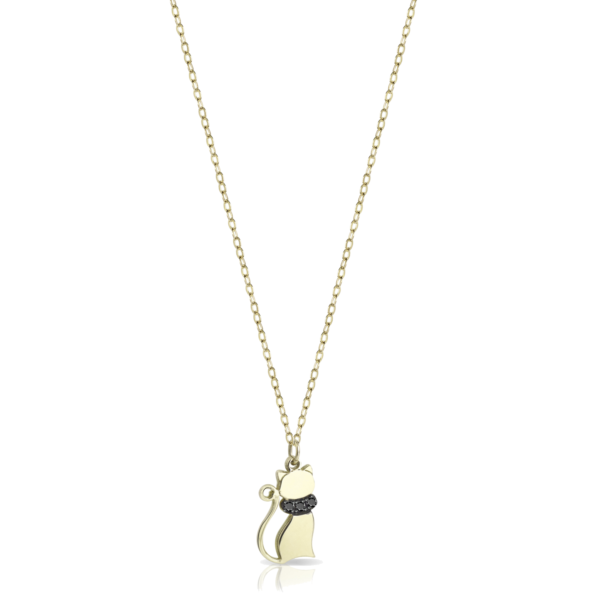 Collana in oro 18kt con ciondolo gatto e diamanti neri