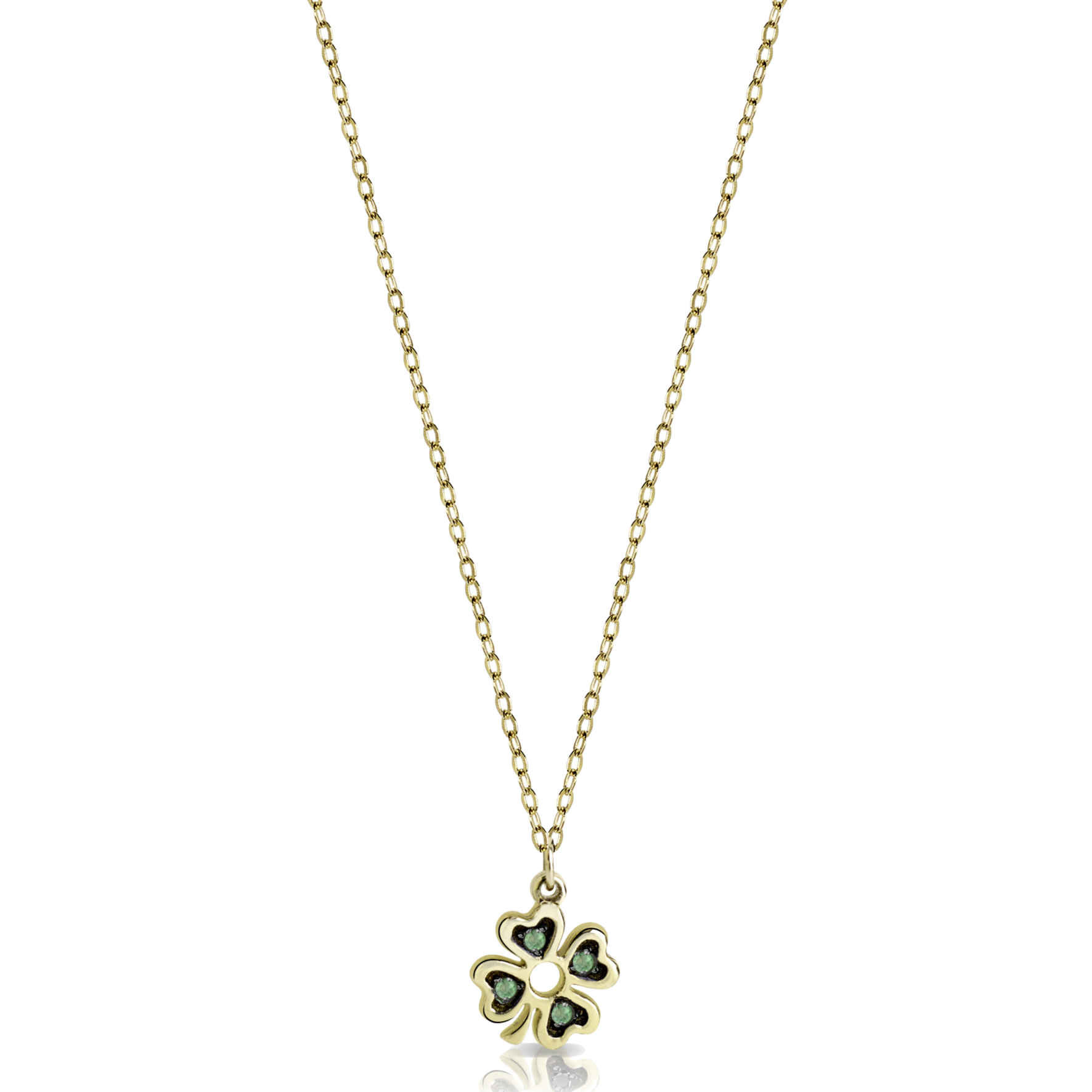Collana in oro 18kt con quadrifoglio di smeraldi
