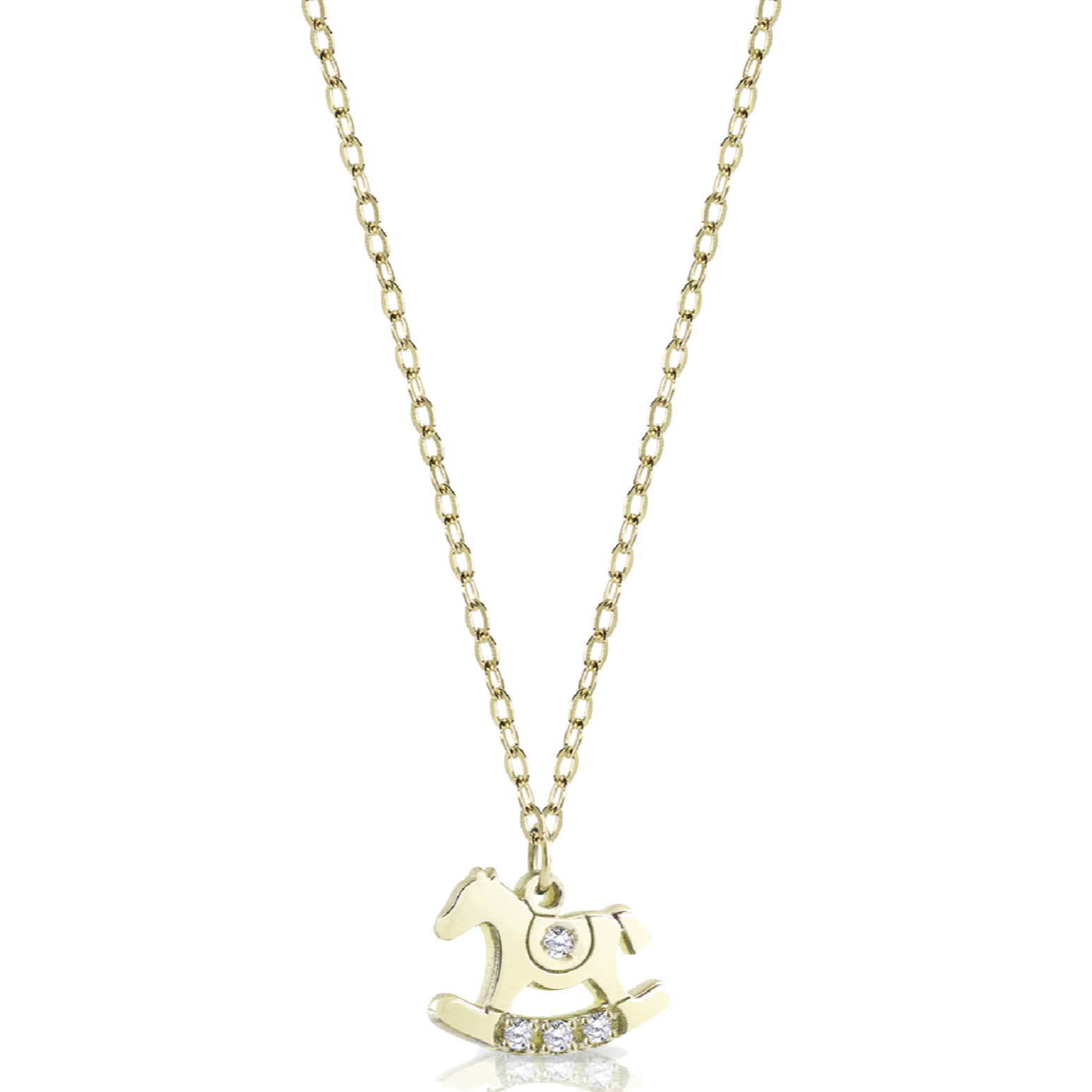 Collana in oro 18kt con ciondolo giostra e diamanti bianchi